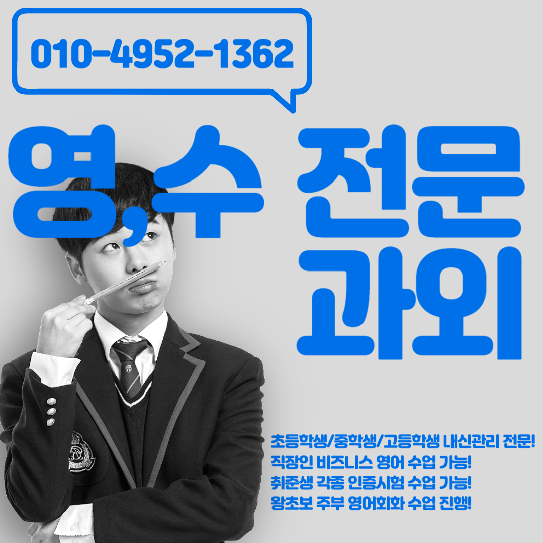 | 성북구 초등학생 영어과외 종암동 하월곡동 중학생 고등학생 수학과외 일대일 전문과외 (0) | 2024.07.17 |
